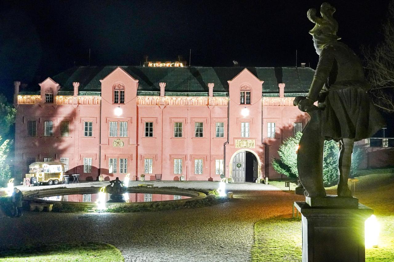Prostředí před zámkem doplňuje sváteční výzdoba, která vytváří ideální kulisu pro zastavení, setkání s přáteli či krátký odpočinek během zimní procházky.