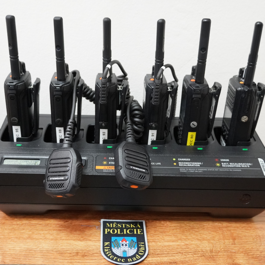 V letošním roce nakoupila osm nových vysílaček Motorola R7, které mají více funkcí a představují v podstatě vnitřní mobilní síť, jsou lehčí a vybaveny přídavným příslušenstvím – mikrofonem a reproduktorem. Další jejich velkou výhodou je dokonalejší šifrování dat. Pro jejich dobíjení slouží nově nakoupený moderní multifunkční nabíječ, který díky svým parametrům baterie šetří a prodlužuje tak jejich životnost.