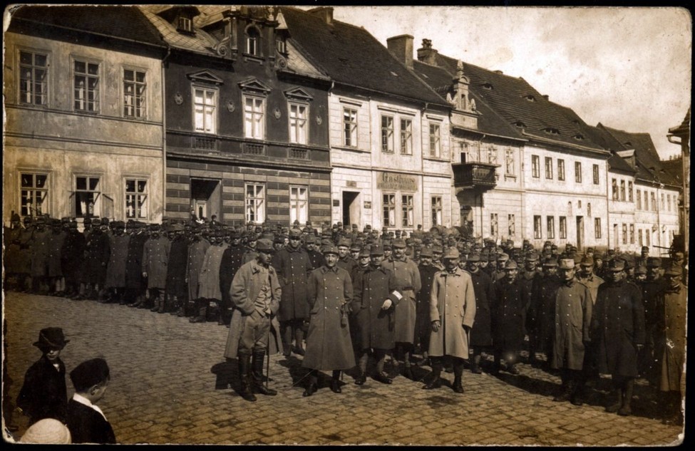 Na fotografii se můžete podívat na vojáky z první světové války na našem náměstí.