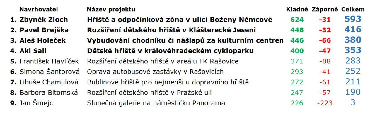 Gratulujeme vítězům, ostatní zařadíme do zásobníku projektů k případné pozdější realizaci. Na projekt Společně pro Klášterec je vyčleněn 1 milion Kč, přičemž maximální náklady jednoho projektu jsou 250 tisíc Kč, realizovat se tak v příštím roce budou s největší pravděpodobností první čtyři.