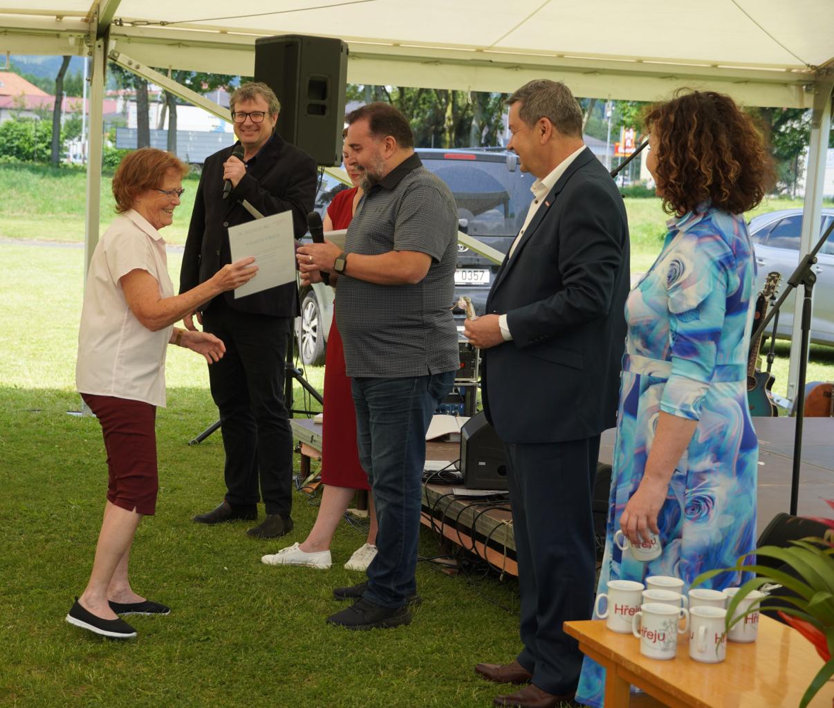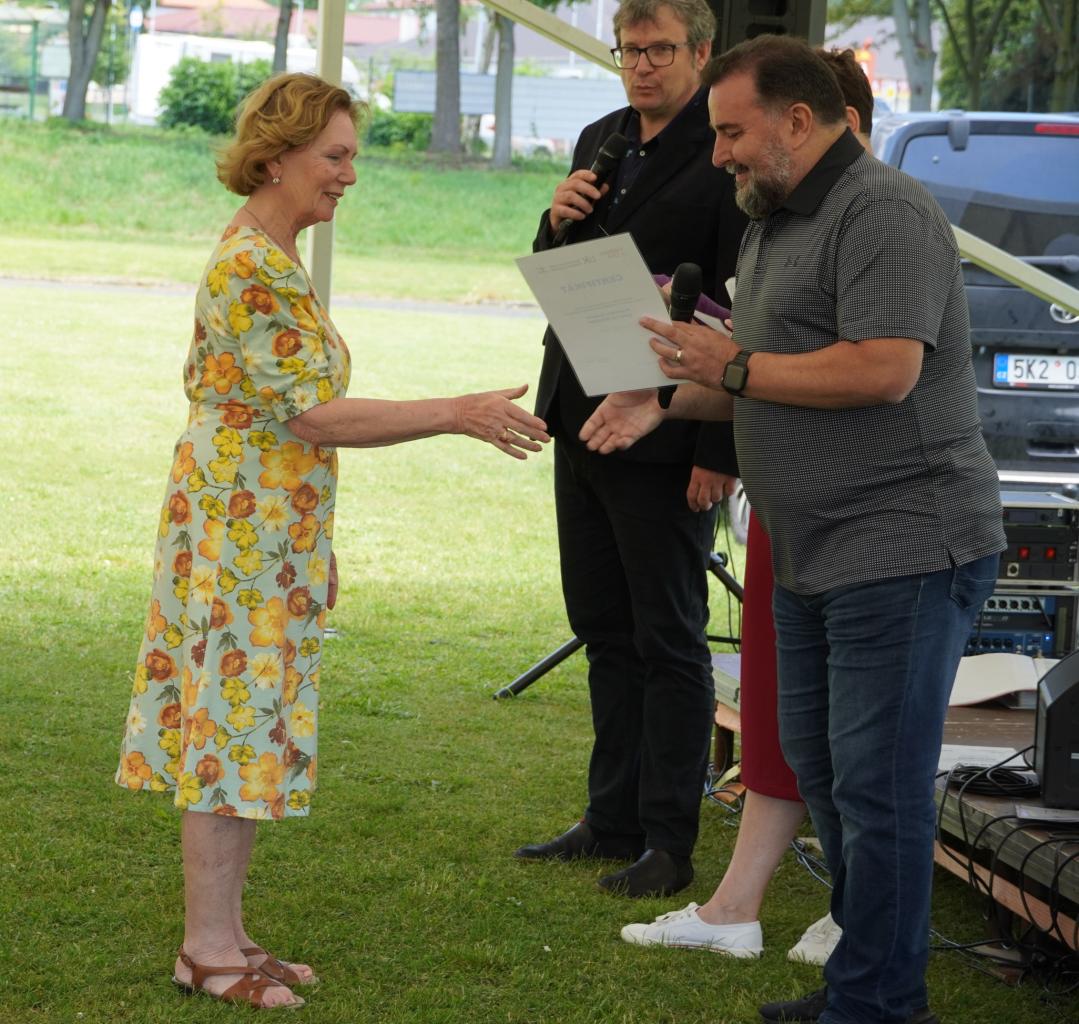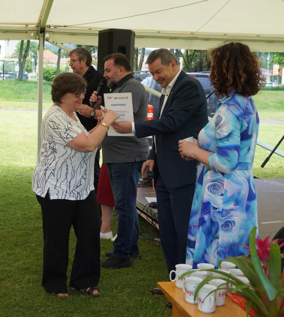 Senioři-absolventi 9. ročníku vzdělávacího projektu si přišli 7. června převzít své certifikáty na zahradu Gymnázia a Střední odborné školy. Odpoledne jim hudebně zpříjemnili žáci ZŠ Petlérská pod vedením učitelky Hany Malastové a Stanislav Hložek.