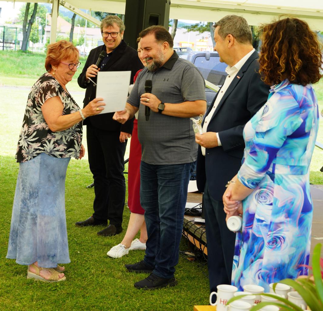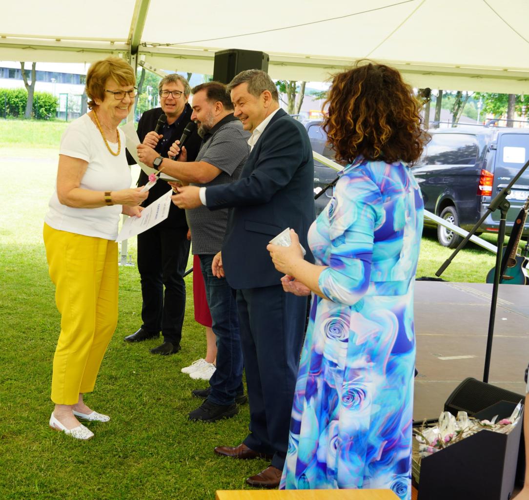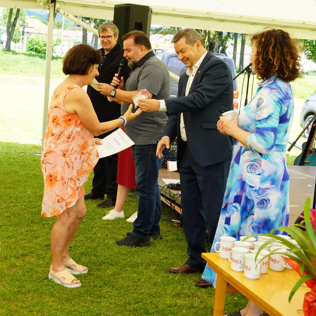 Senioři-absolventi 9. ročníku vzdělávacího projektu si přišli 7. června převzít své certifikáty na zahradu Gymnázia a Střední odborné školy. Odpoledne jim hudebně zpříjemnili žáci ZŠ Petlérská pod vedením učitelky Hany Malastové a Stanislav Hložek.