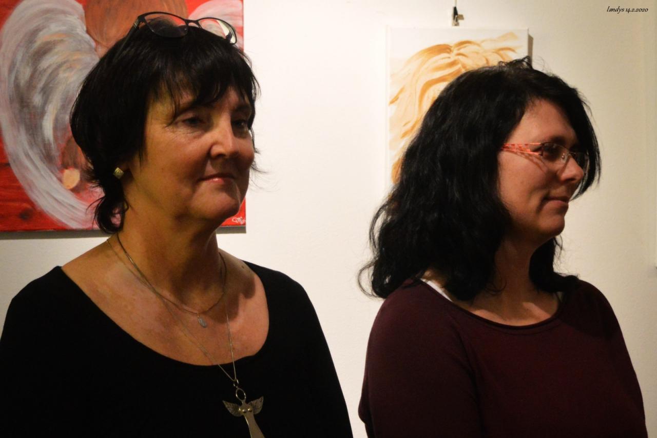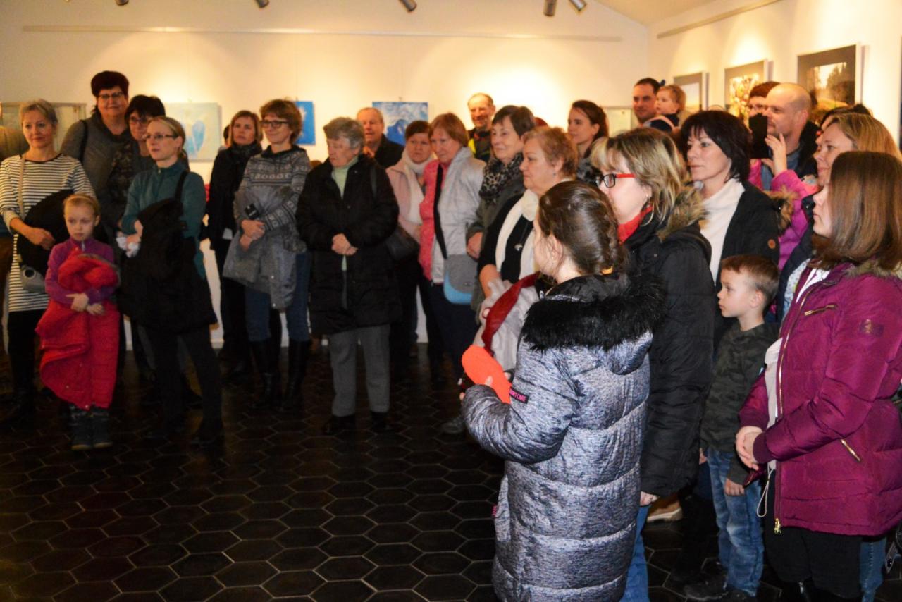 Fotografie z vernisáže výstavy fotografií a obrazů pedagogů ze ZŠ Petlerská.